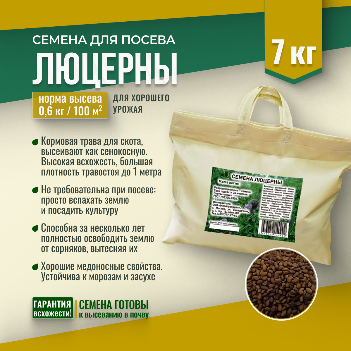 Купить Семена Люцерны Мосагрогрупп 7кг шопер с доставкой по всей России.