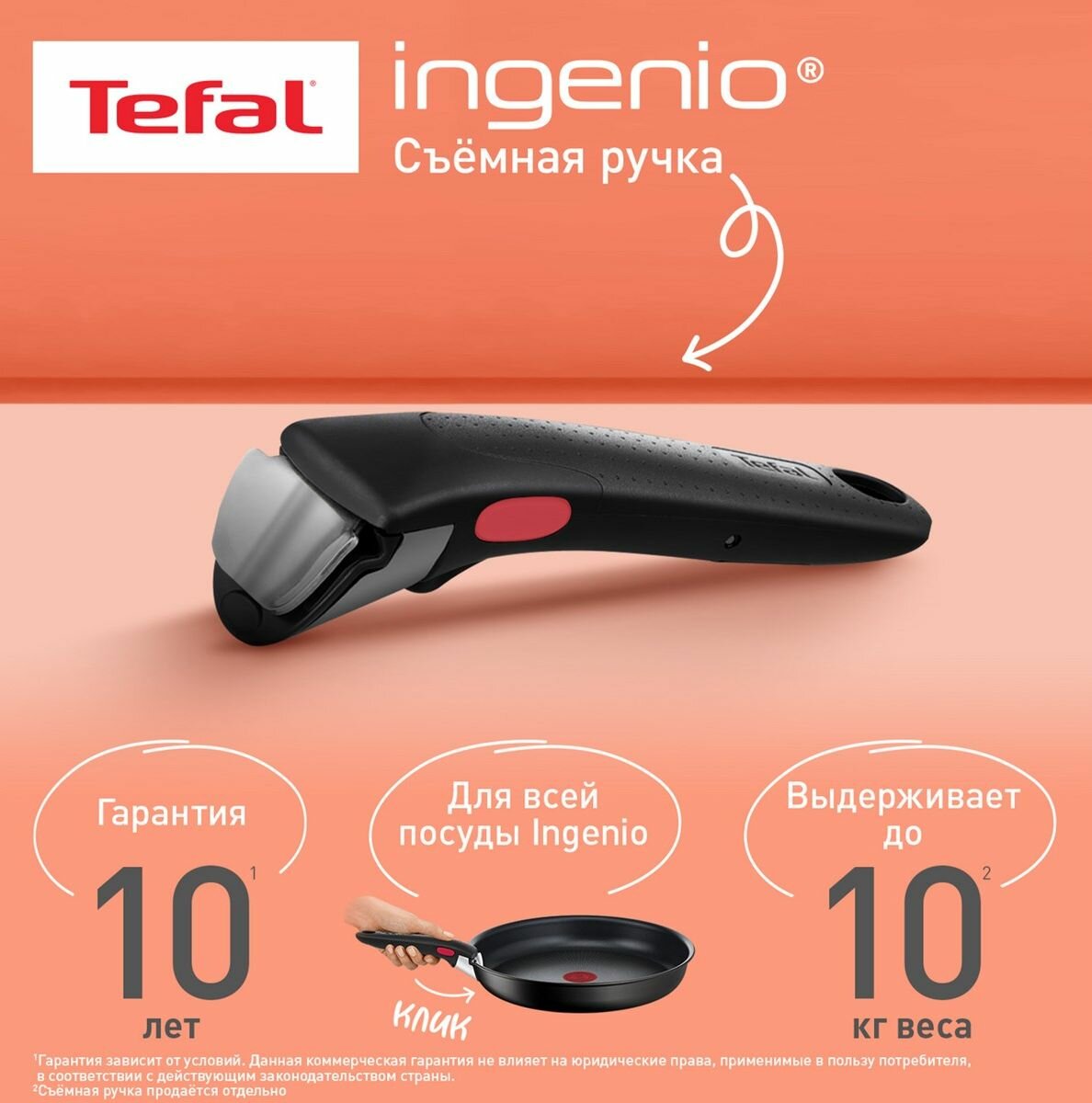 Купить Съемная ручка для посуды Tefal Ingenio 6 04240810, 10 лет гарантия, выдерживает нагрузка до 10 кг с доставкой по всей России.