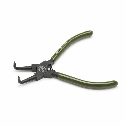 Загнутый съемник стопорных колец применяется при монтаже и демонтаже внутренних стопорных колец в труднодоступных местах. Работает на сжатие. Съемник стопорных колец снабжен возвратной пружиной для более быстрой и удобной работы. Длина: 230 мм Диаметр рабочей части: 2,0 мм Максимальное раскрытие: 36 мм Сталь: 31CrV3 Твердость: 43-45 HRC Фосфатирование