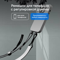 Съемный ремешок к телефону MOFT Phone Lanyard Ремешок для телефона с регулировкой длинны. Приклеивается к любому смартфону за счет многоразовой клейкой основы из металла. Основа сделанна из прочного, тонкого металла с полированными краями и компактным дизайном. Ремень можно регулировать по длинне за счет карабинов и завязок. Дополняется чехлом “Vegan Leather Snap Case”. В чехле есть выдвижные петли, на которые можно закрепить ремешок.