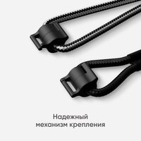В Lanyard мы используем прочнейшие и качественные материалы. Надежные карабины выдержат вес до 8 кг нагрузки, а ремни будут сохранять свой вид и радовать вас очень долго. Специально для lanyard был разработан чехол Vegan Leather Snap Case для iPhone 14 версии. В чехле есть выдвижные петли, на которые можно закрепить ремешок. Приклеивается к полиуретану, поликарбонату(пластику) и аллюминиевым чехлам. Не использовать с голым телефоном и силиконовыми чехлами.