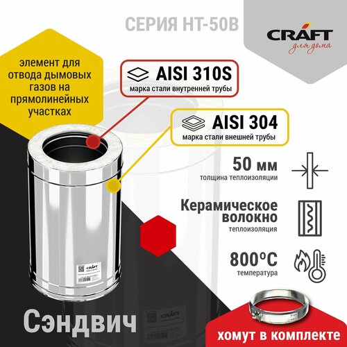 Купить Элемент дымохода Сэндвич для дымохода 500 Craft HT-50B (310/0,8/304/0,5) Ф120х220 с доставкой по всей России.