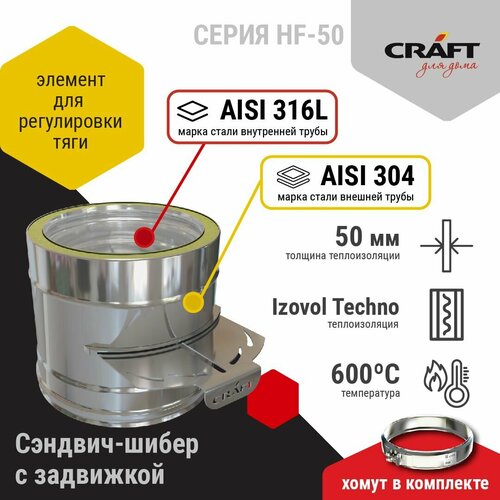 Элемент дымохода Сэндвич-шибер-задвижка Craft HF-50 (316/0,8/304/0,5) Ф120х220: сравнение цен, характеристики, фото, актуальное наличие и цены.