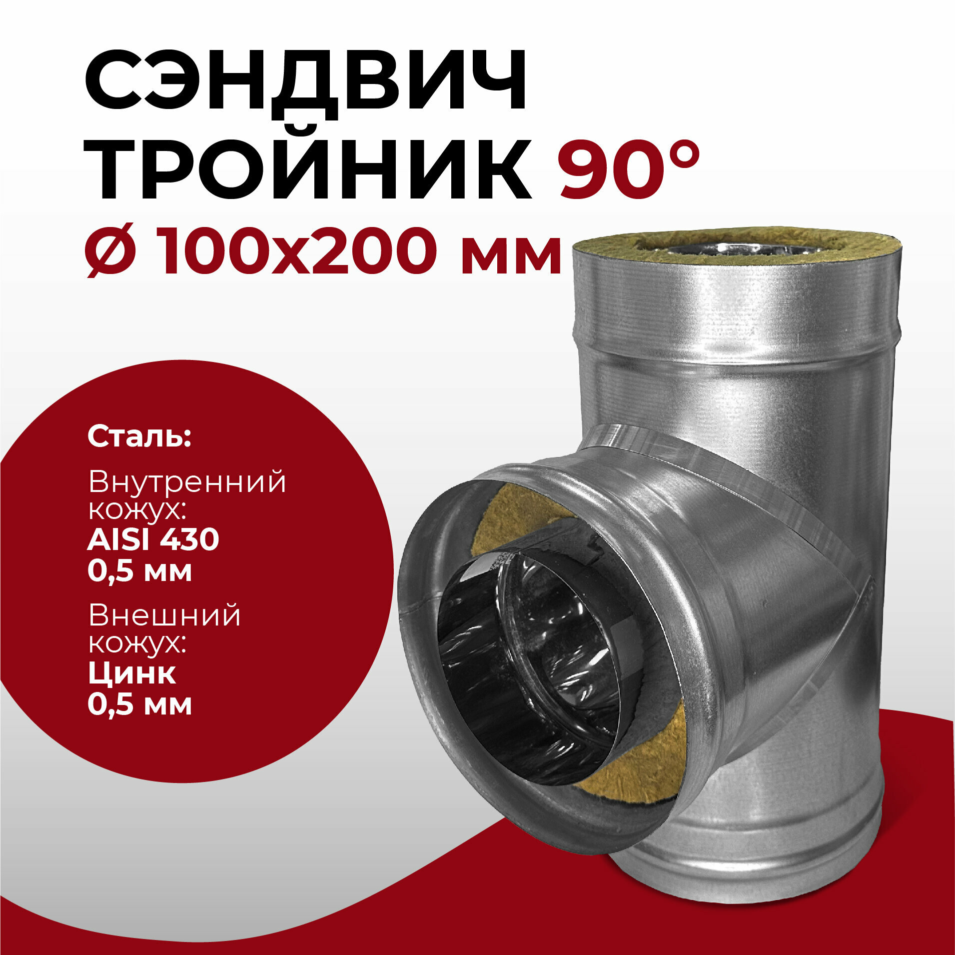 Сэндвич тройник для дымохода утепленный 90 градусов d 100×200 мм (0,5/430*0,5/Цинк) «Прок»: сравнение цен, характеристики, фото, актуальное наличие и цены.