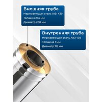 Купить Сэндвич-труба для дымохода 0,5м UMKPRO, D 115х200, AISI 439/439, 1,0мм/0,5мм с доставкой по всей России.