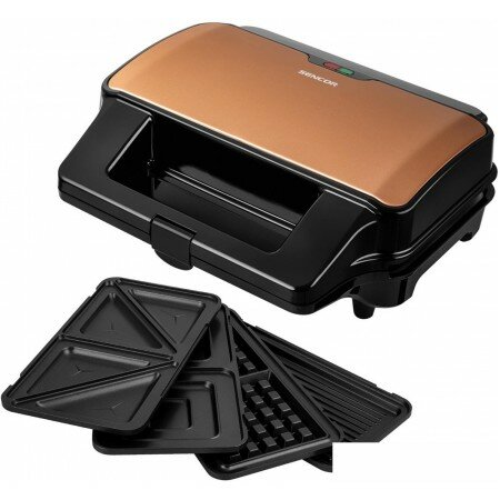 Многофункциональная сэндвичница Sencor SSM 9976GD, 900 Вт, съемные плитки, золотистый: сравнение цен, характеристики, фото, актуальное наличие и цены.