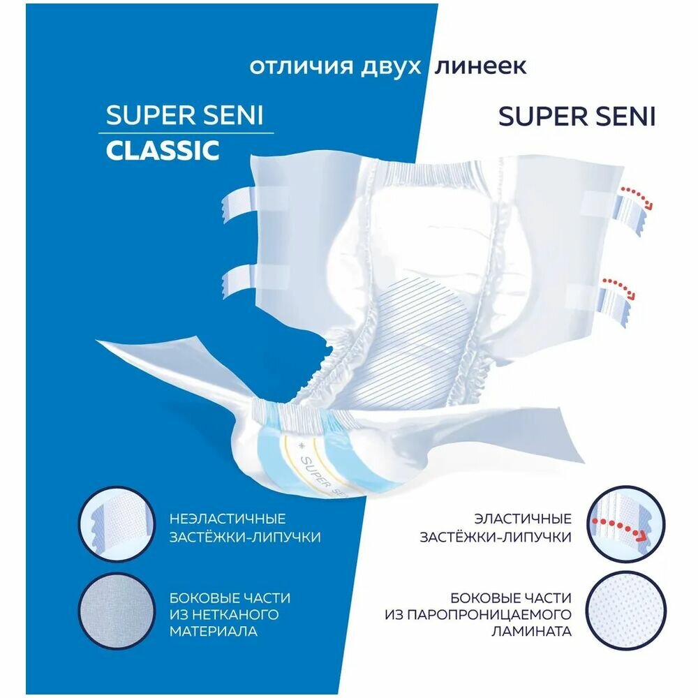 Купить Seni Подгузники для взрослых Super Classic, 55-80 см, S (30 шт.) с доставкой по всей России.