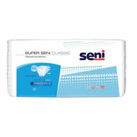 Super Seni Classic - классические подгузники для взрослых с боковыми крыльями из нетканого материала. Предназначены для защиты при средней и тяжелой степени недержания. Особенно удобны для малоподвижных и лежачих больных. Подходят для женщин и мужчин.