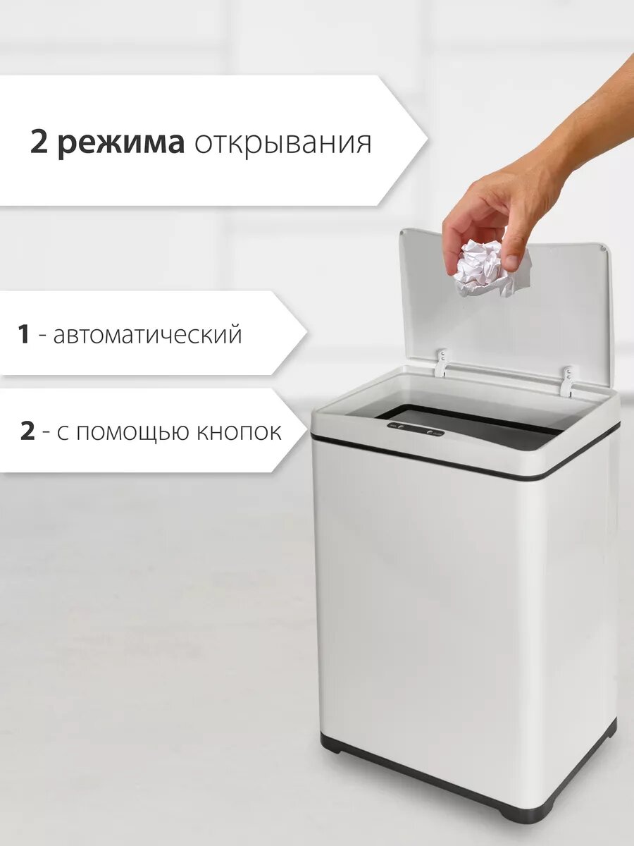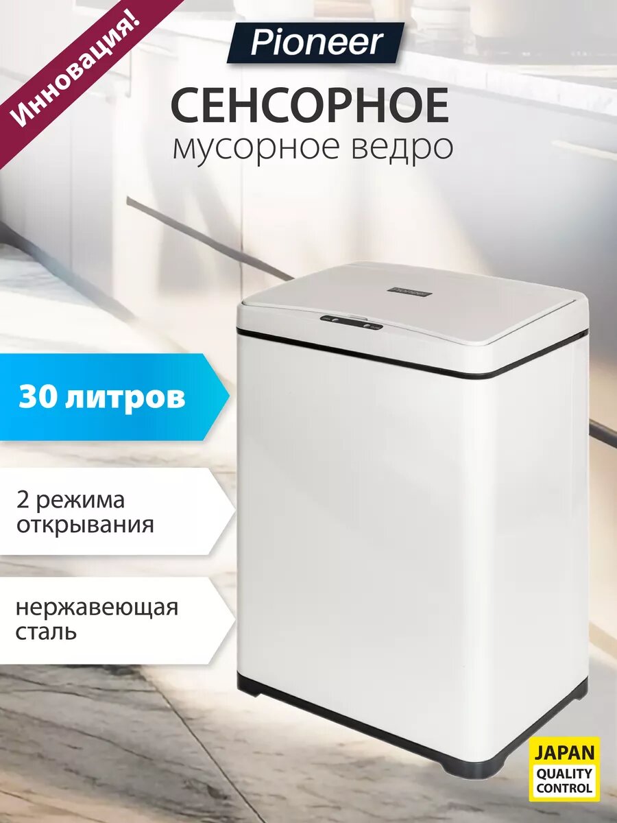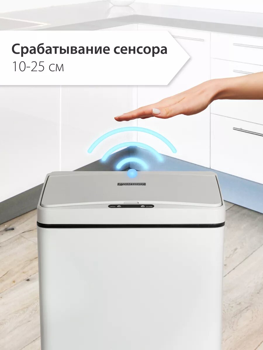 Сенсорное бесконтактное мусорное ведро Pioneer WB301W с 2 режимами открытия крышки, 30 л: сравнение цен, характеристики, фото, актуальное наличие и цены.