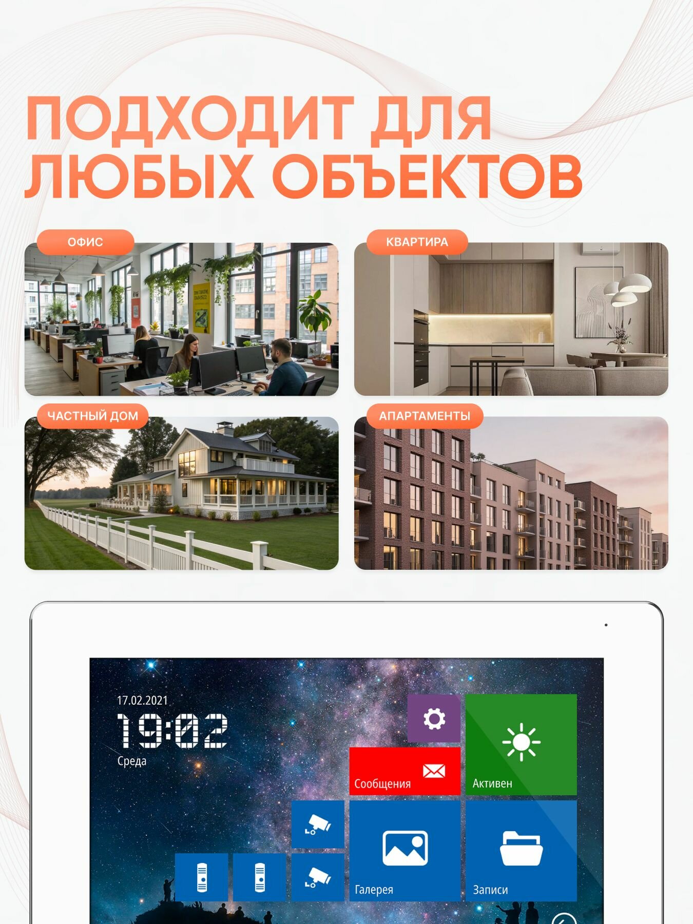 Цветной монитор видеодомофона 10,1" формата Ahd(1080p), с сенсорным управлением, детектором движения .