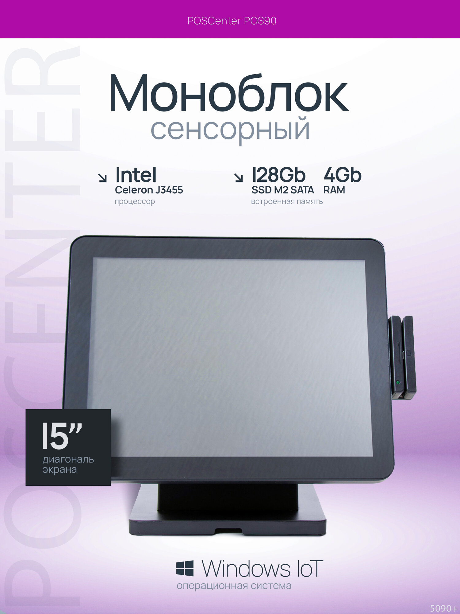 Сенсорный POS моноблок POSCenter POS90 (15″, PCAP, J3455, RAM4Gb DDR3L1.35V, SSD M.2 SATA 128Gb, MSR, Windows): сравнение цен, характеристики, фото, актуальное наличие и цены.