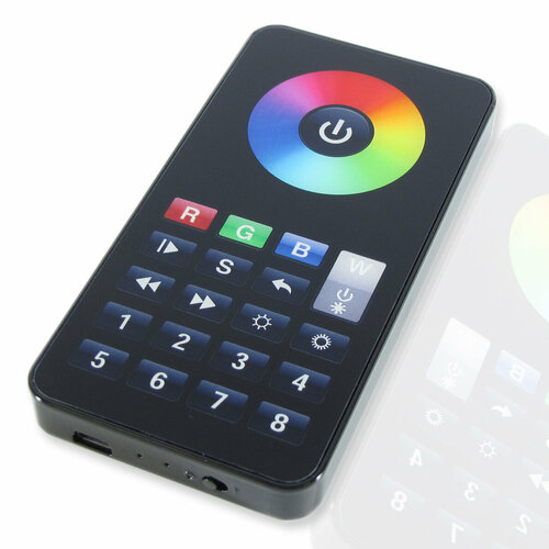Сенсорный RGBW пульт SR-2818 Wi-Fi, Bluetooth, IOS / Android (8 зон.). Используется с контроллерами SR-1009FA, SR-1009FA Wi-Fi. Арт.52223,52229. Поддерживается управление через телефон по Wi-Fi( iphone, Ipad, Andriod). Поддержка до 8 зон, возможность программирования до 8 сценариев на одну зону, имеет встроенные программы управления, размеры 115x59x15 мм.