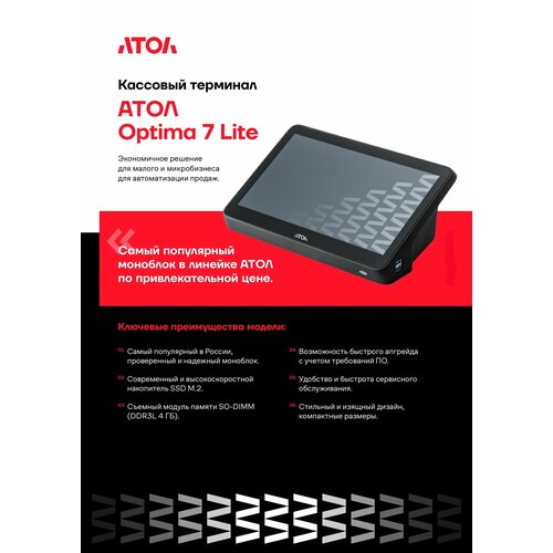 Надежный и высокопроизводительный POS-терминал АТОЛ Optima с новым производительным и современным процессором Intel Celeron J3455 поможет автоматизировать торговлю в соответствии с 54-ФЗ. В АТОЛ Optima учтены все требования к современному кассовому оборудованию: высокое качество, красивый дизайн, компактность, работа со всем торговым оборудованием и программами, возможность автономной работы от аккумулятора, установки дополнительного накопителя HDD/SSD и многое другое.