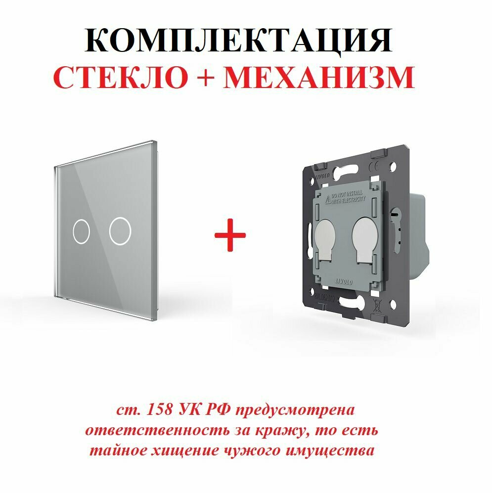 Двухклавишный сенсорный выключатель со стеклянной лицевой панелью LIVOLO VL-C702-15 Серого цвета предназначен для управления двумя линиями нагрузки. Поддерживает управление лампами любого типа.