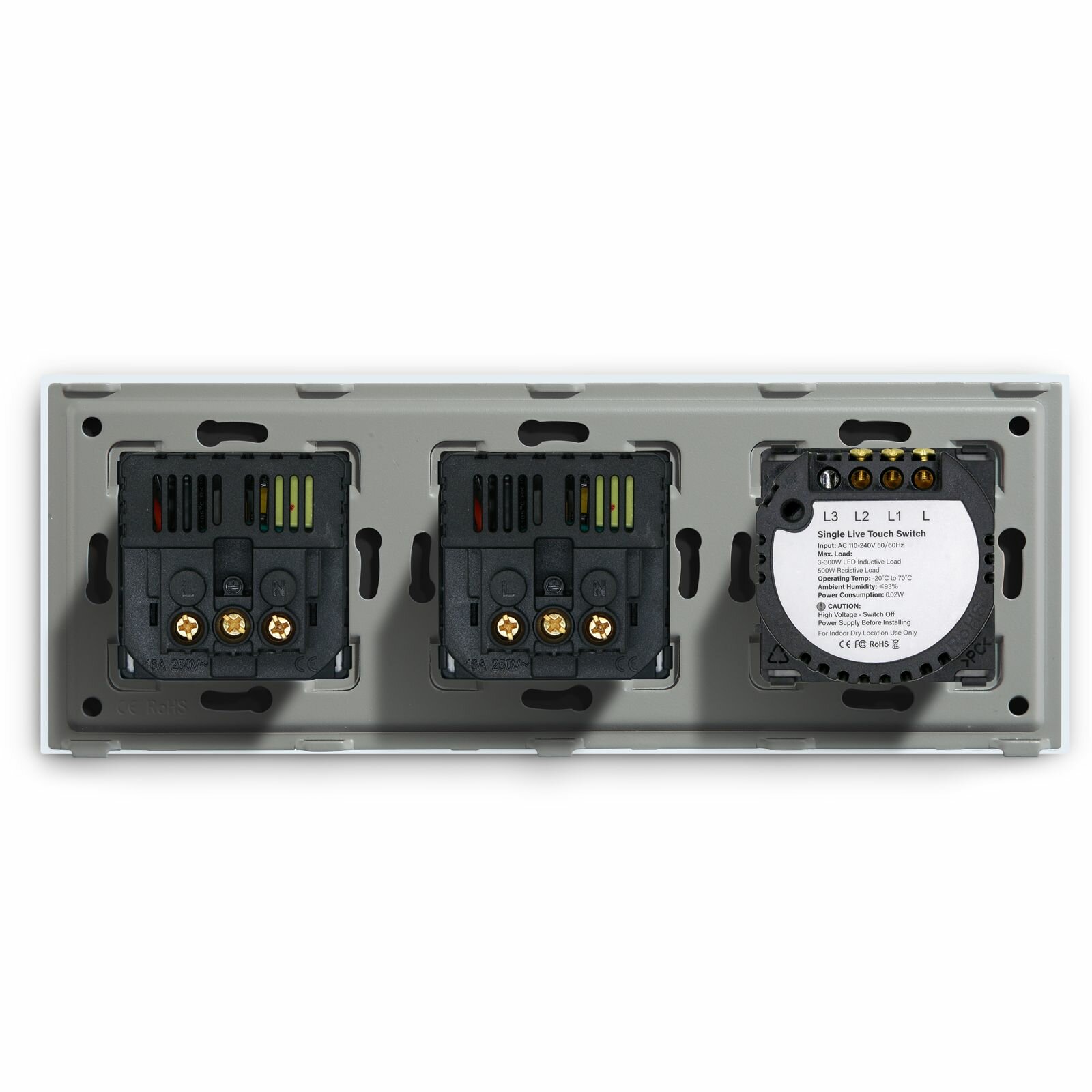 - Возможность комплектации сенсорными модулями : диммер, проходной, WIFI.
