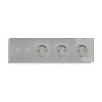 Сенсорный выключатель с розеткой 2кл. 3 розетки, 4 поста (2G+3EU) стекло299х86мм цвет серый