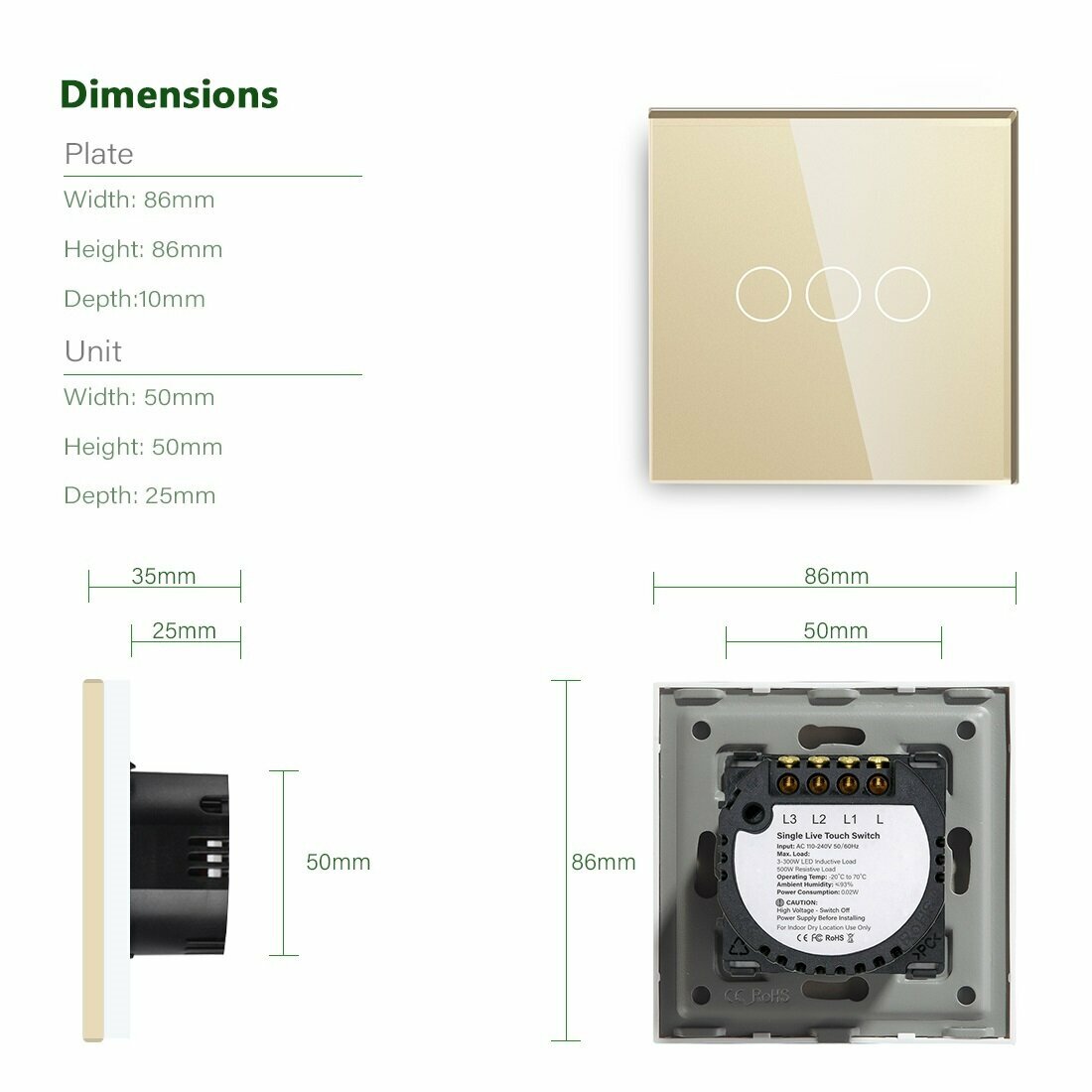 - Панель выключателя выполнена из стекла 4мм, легко очищается , устойчива к царапинам, стильно выглядит в интерьере. В данных выключателях заложен большой запас по подключаемой нагрузке в 1000 Ватт на клавишу этого с запасом хватает даже для больших домашних люстр.