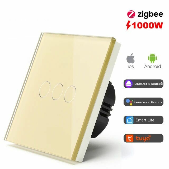 - Умный, сенсорный выключатель с поддержкой Алисы и других голосовых помощников. Выключатель подключается в разрыв фазы как стандартный клавишный выключатель, ноль и конденсатор для выключателя не требуется. Для работы выключателя нужен шлюз ZigBee или Умная колонка с ZigBee (шлюз ZigBee есть в нашем ассортименте арт. ZB-3.0JMWZG1). Сенсорный выключатель ZigBee (не проходной), позволяет управлять световыми приборами в ручном режиме или голосом, через смартфон, планшет, умную колонку. При включении и выключении выключателя слышен слабый щелчок, подсветка выключателя в выключеном состоянии тускло голубая во включеном ярче голубая, управление выключателем происходит по протоколу ZigBee, это протокол специально разработан для устройств "умного дома" , основное отличие от протокола WiFI это быстрая, стабильная работа и низкое энергопотребление