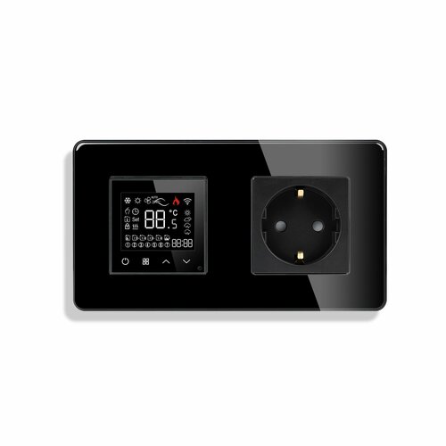 Умный WI-FI терморегулятор с Алисой совмещенный с розеткой, сенсорный терморегулятор для управления температурой теплого пола с возможностью управления по Wi-Fi при помощи мобильного приложения Smart Life, Tuya.