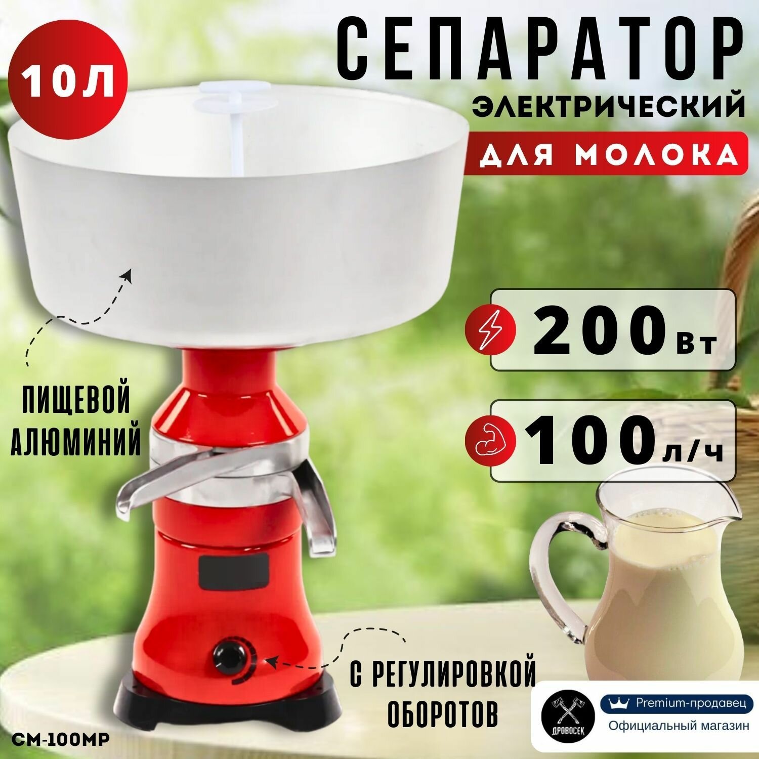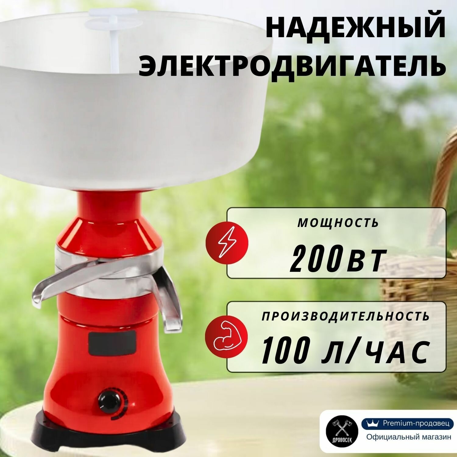 Сепаратор центробежный обладает надежным электродвигателем мощностью 200 Вт, который обеспечивает эффективную работу и отличную производительность -100 л/ч молока (с получением от 5 до 12 литров сливок в час). Время беспрерывной работы сепаратора для козьего и коровьего молока - 60 мин, пауза- 30 мин. Электрический двигатель молочного сепаратора работает от сети 220В с частотой 50 Гц.