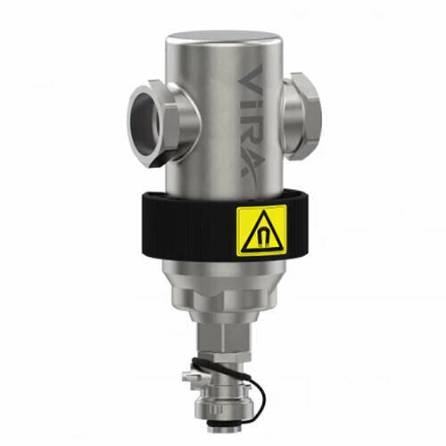 Магнитный сепаратор шлама и грязи VIRAclean изготовлен из высококачественной латуни UNIEN 12165 CW167N, внутренний элемент Virasmart выполнен из нержавеющей стали AISI 304. Легко съемный неодимовый магнит обеспечивает высокие магнитные характеристики. Магнитный дешламатор ViraClean удаляет все частицы размером более 60 микрон и магнитный шлам до 5 микрон.