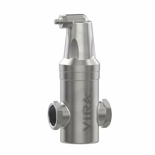 Сепаратор воздуха VIRAvent изготовлен из высококачественной латуни UNIEN 12165 CW167N, внутренний элемент Virasmart выполнен из нержавеющей стали AISI 304. Помимо систем отопления и кондиционирования, может применяться в системах ГВС для дегазации санитарной воды после водонагревателей или теплообменников.