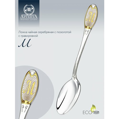 Серебряная чайная ложка с логотипом "М" от бренда "Аргента" - это изысканный и стильный аксессуар для вашей кухни. Изготовлена из серебра 925 пробы, что гарантирует высокое качество и долговечность.