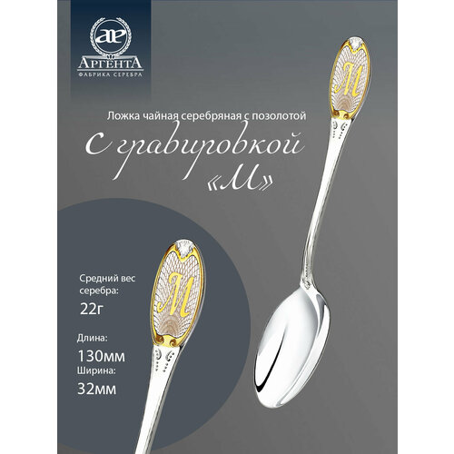 Купить Серебряная чайная ложка с позолотой «М» от бренда «АргентА» с доставкой по всей России. Серебряная чайная ложка с позолотой «М» от бренда «АргентА»: сравнение цен, характеристики, фото, актуальное наличие и цены.