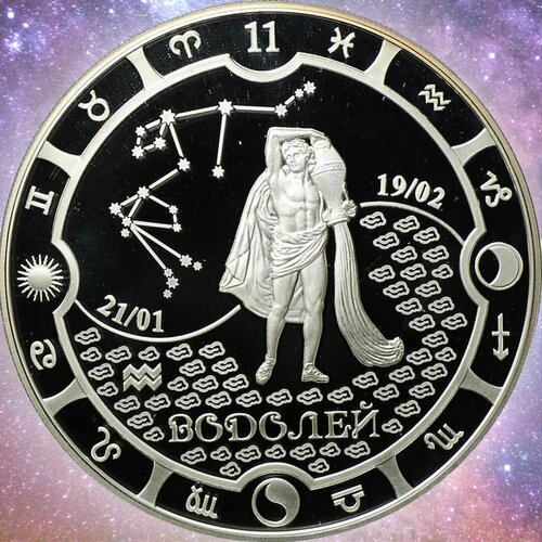 В 2014 году по заказу государства Габон на Московском монетном дворе были отчеканены монеты серии «Знаки Зодиака». номинал монеты - 2000 франков КФА. Тираж монеты всего 3000 шт. Качество - пруф. Монеты продаются в капсуле и обитом бархатом футляре. Аверс: На зеркальном поле в центре – Герб республики Габон (щит, с тремя безантами; в щите за основанием корабль, с флагом на корме; щит держат две пантеры; позади щита древо с кроной, на корнях - щитодержатели; выше щита девизная лента с надписью Uniti Progredimur ( «Продвигаемся вместе»), ниже — девизная лента с надписью Union, Travail, Justice («Союз, Труд, Правосудие»). Под гербом расположены надписи различным шрифтом, после неё клеймо ММД. В верхней части вдоль канта надпись заглавными буквами страна - эмитент монеты (Республика Габон). Внизу вдоль канта – «2000 FRANCS CFA». Реверс: На зеркальном поле вдоль канта расположены 12 зодиакальных символов, цифра знака и символы солнца, луны и Инь и Янь. Центральная часть изображения представляет собой так же символ Инь и Янь. Верхняя часть его имеет зеркальное поле, в котором расположен зодиакальный символ знака Водолей, схематичное изображение созвездия Водолея и даты, в которые господствует этот знак зодиака. В нижней части на зеркальном поле расположено схематичное повторяющееся изображение символа стихии знака, надпись знака зодиака и его стилизованное изображение.