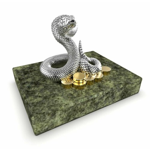 Сувенир символ года 2025 «хранитель благополучия» Материал: серебро 925 проба, чернение, золочение Размер изделия: длина 39мм х высота 33мм, ср. вес:35гр. Подставка: змеевик (55мм х 35мм х 10мм)
