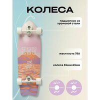 Сёрфскейт предлагает совершенно иной способ катания по сравнению с традиционными лонгбордами. Движения на сёрфскейте очень похожи на сёрфинг, где райдер набирает скорость за счёт работы плечевого пояса и переноса центра тяжести от носка к пятке – пампинга. Эта техника сильно отличается от лонгборда и скейтборда, где для набора скорости нужно отталкиваться ногой от поверхности. Подвески сёрфскейта очень маневренные, позволяют совершать резкие повороты в любую сторону. Размер деки (7 слоев клена) 32" на 9,5 дюймов (82*24 см). Полиуретановые колеса размером 65 на 45 мм, жесткость - 78А, подшипники - ABEC-9. Прочные алюминиевые подвеска шириной 6,25" S5 (вращениее на 175/220 градусов) обеспечат надежное катание. Для любителей лонгборда, сап бордов, серфинга, скейтбординга и других активных видов спорта.