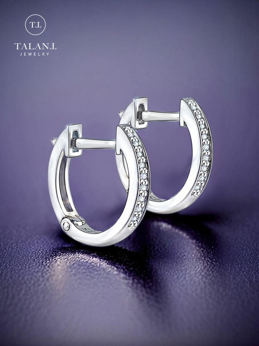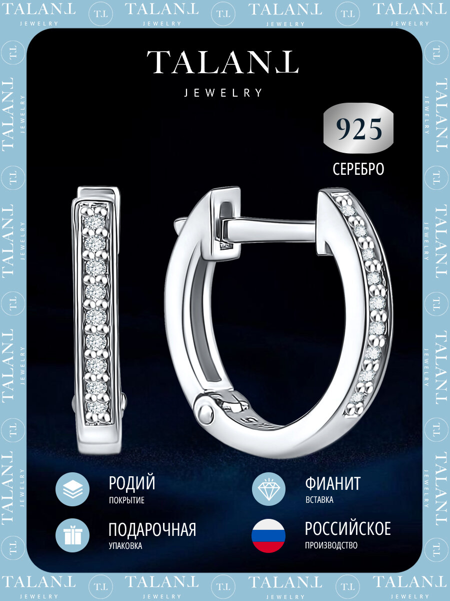 Купить Серьги конго TALANT, серебро, 925 проба, родирование, фианит, , серебристый с доставкой по всей России.