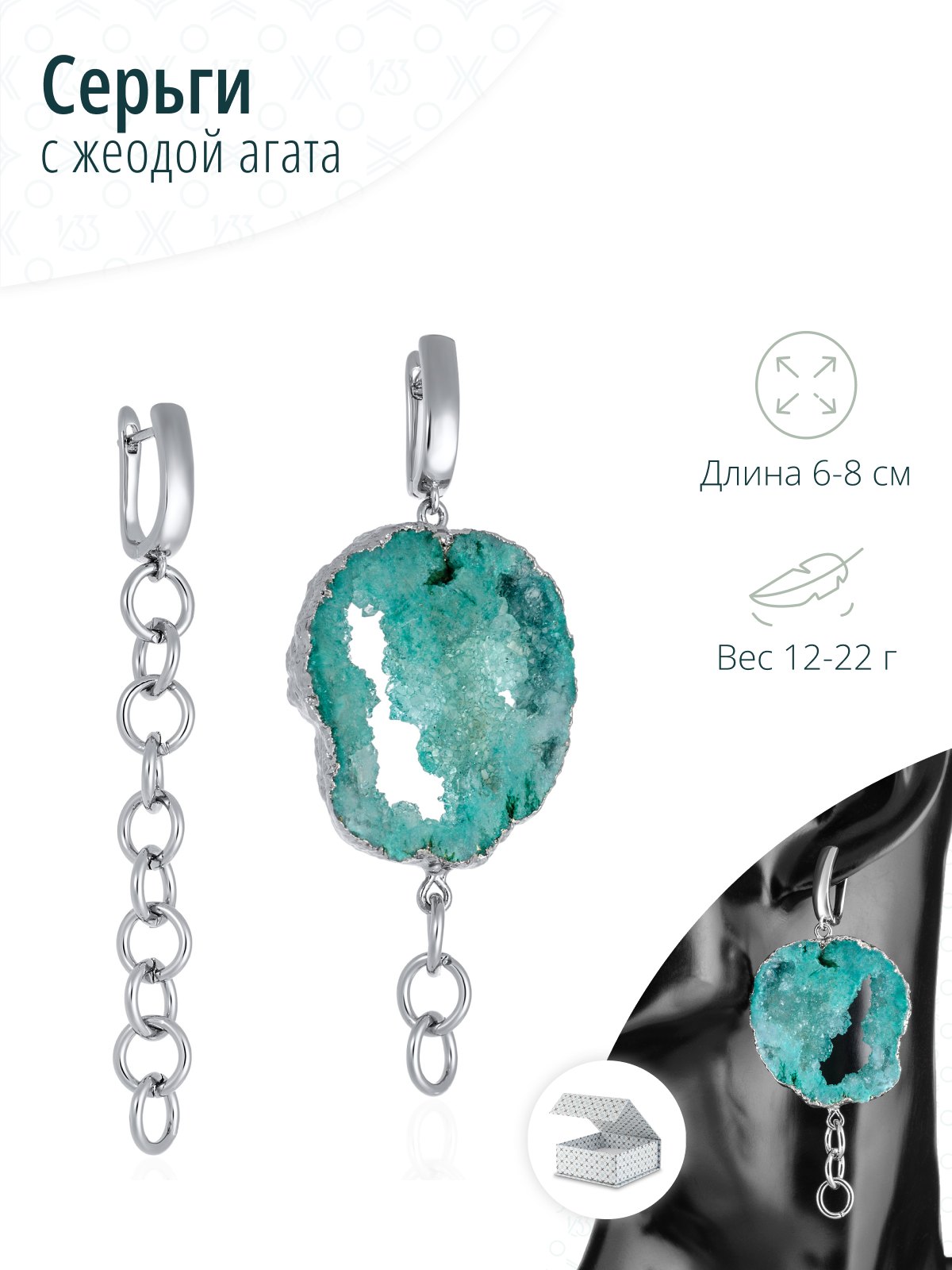 Серьги непарные 1/33 EDITION, агат, серебристый/зеленый: сравнение цен, характеристики, фото, актуальное наличие и цены.