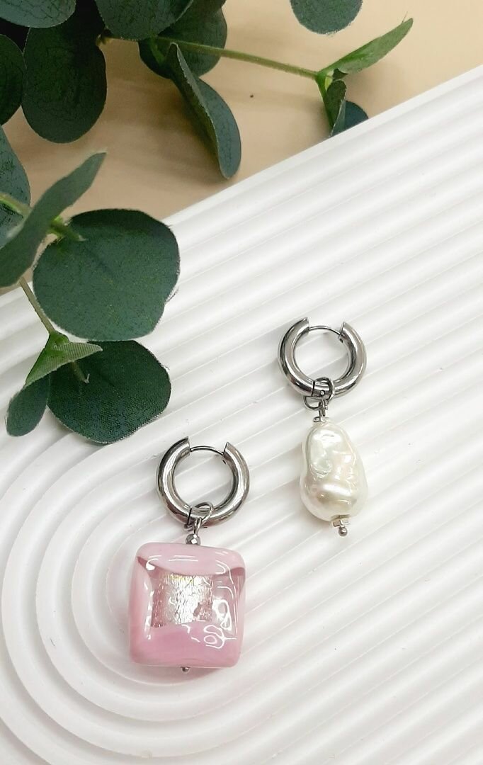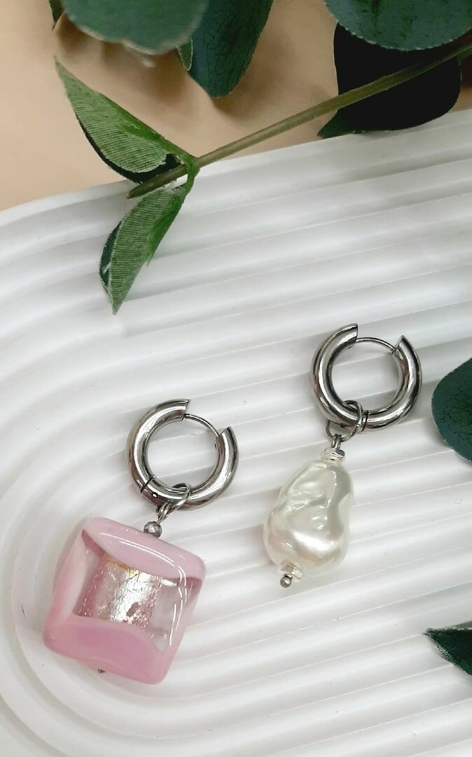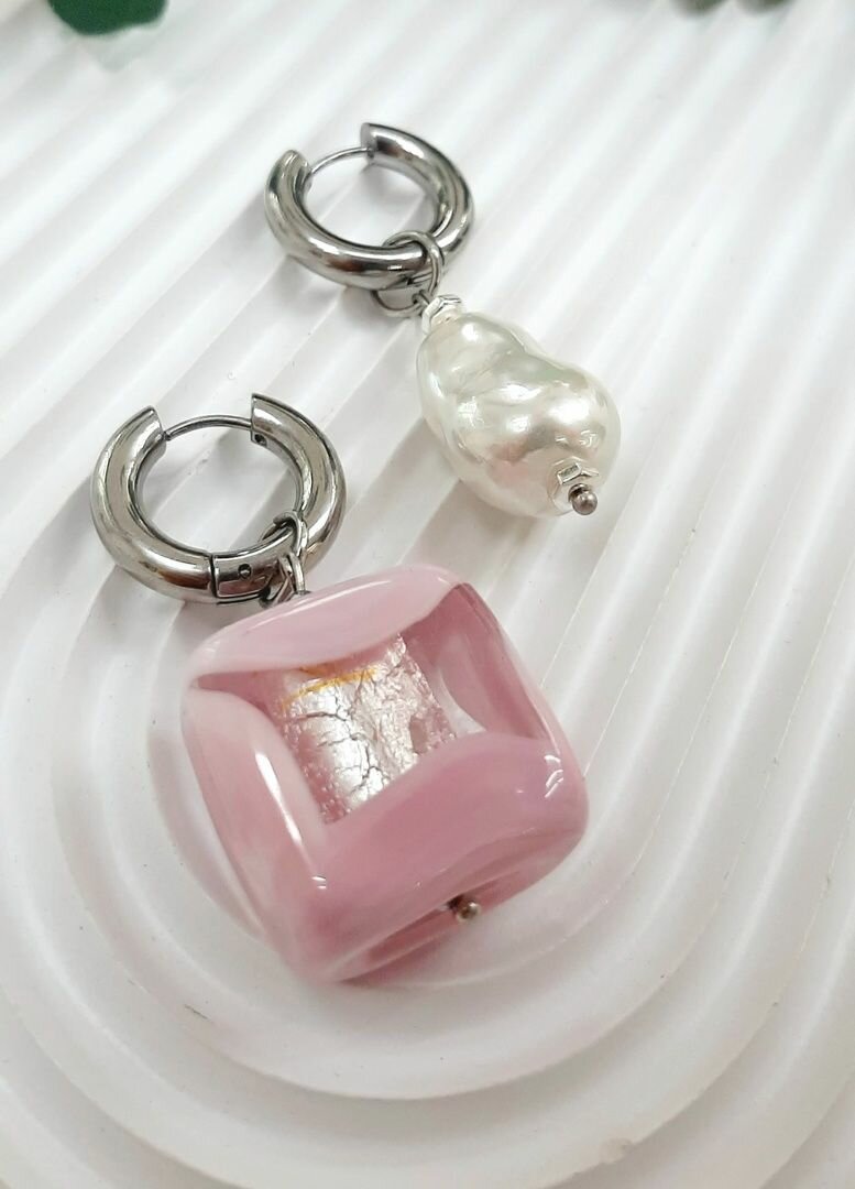 Серьги P.J. MURANO, стекло, муранское стекло, жемчуг имитация, белый, серебряный, розовый: сравнение цен, характеристики, фото, актуальное наличие и цены.