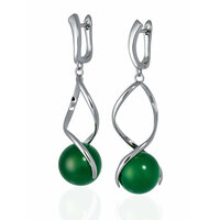 Серьги с подвесками 1/33 EDITION, агат, серебристый/зеленый