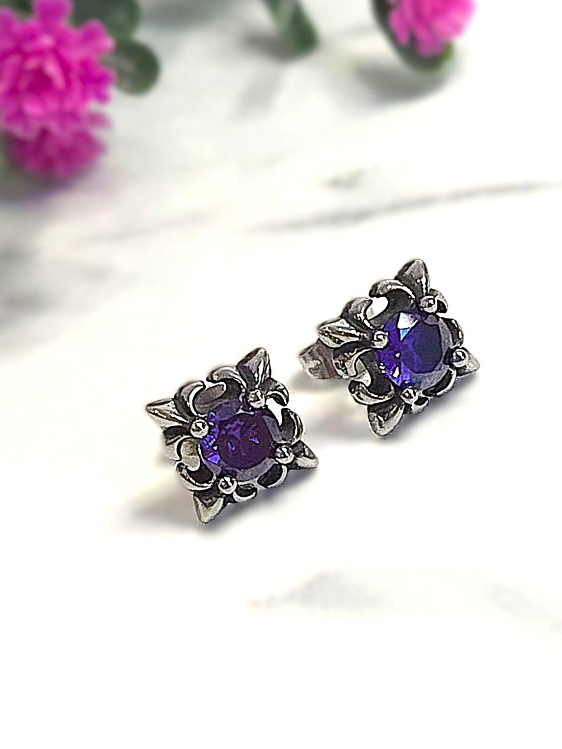 Купить Серьги-трансформеры Starfallshop, славянский оберег, искусственный камень, металл, фианит, размер 12 мм, серебряный, фиолетовый с доставкой по всей России.