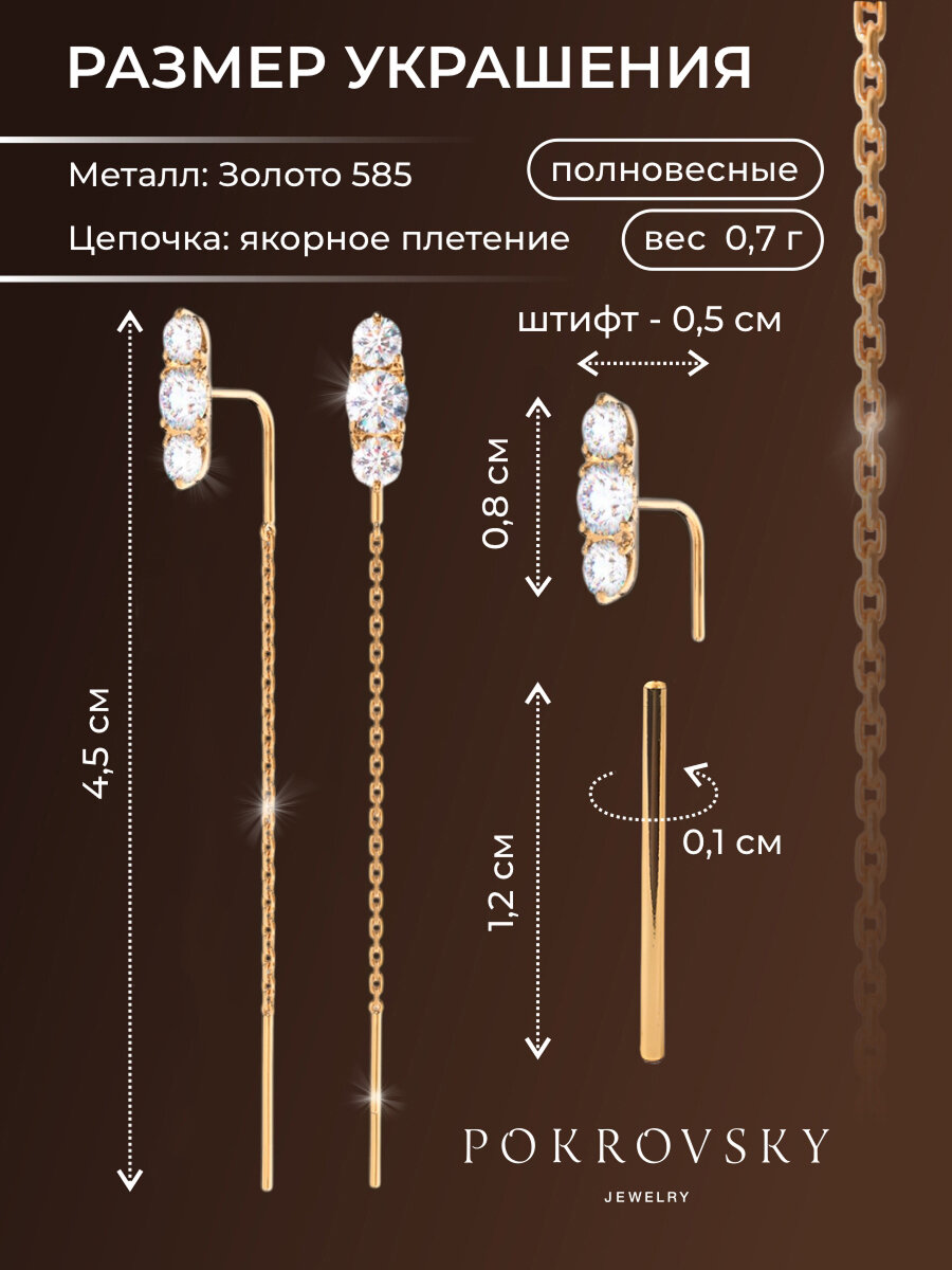 Серьги цепочки POKROVSKY, красное золото, 585 проба, фианит, длина 4.5 см, , золотой: сравнение цен, характеристики, фото, актуальное наличие и цены.