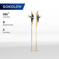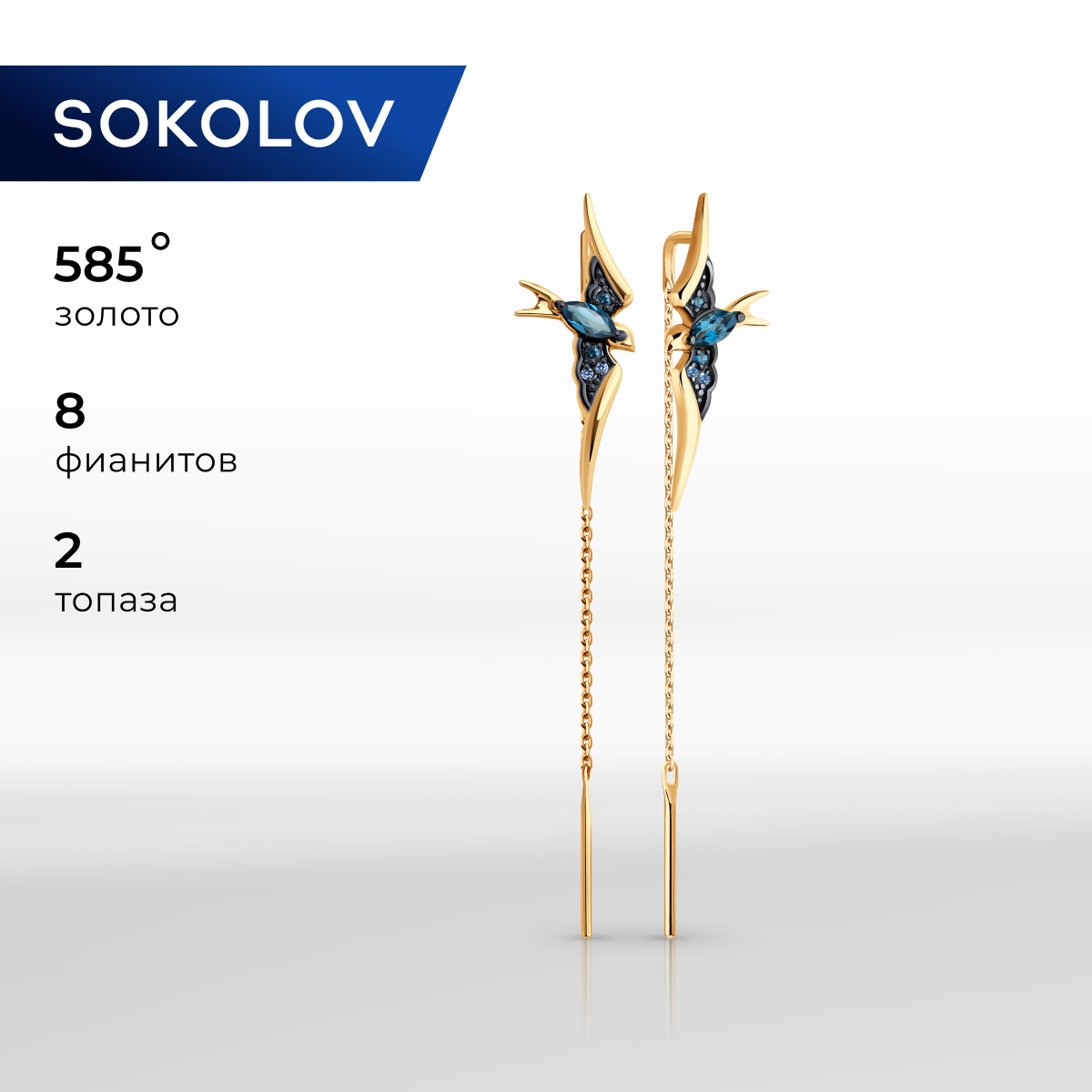 Серьги цепочки SOKOLOV, красное золото, 585 проба, топаз, фианит, размер 60 мм: сравнение цен, характеристики, фото, актуальное наличие и цены.