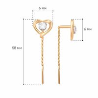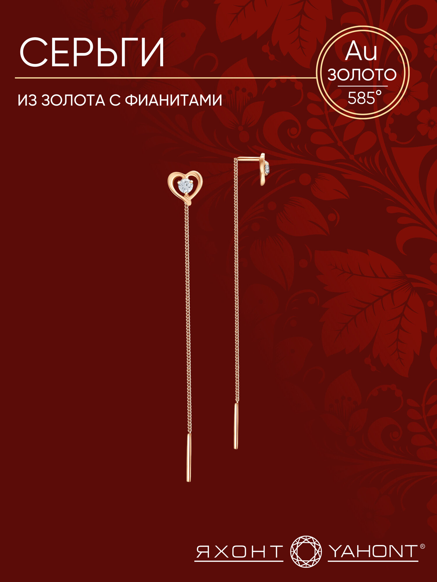 Купить Серьги цепочки Яхонт, красное золото, 585 проба, фианит, размер 6 мм, длина 5.8 см, , бесцветный с доставкой по всей России.