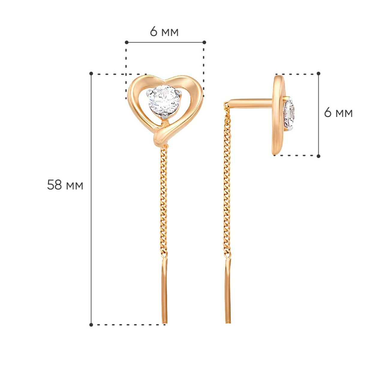 Серьги цепочки Яхонт, красное золото, 585 проба, фианит, размер 6 мм, длина 5.8 см, , бесцветный: сравнение цен, характеристики, фото, актуальное наличие и цены.