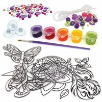 В наборе: 13 деталей для создания 3х витражей, 5 красок по 3мл, кисть, бусины, эластичная нить, стразы, 3 присоски, инструкция, история звезды Хазелии.