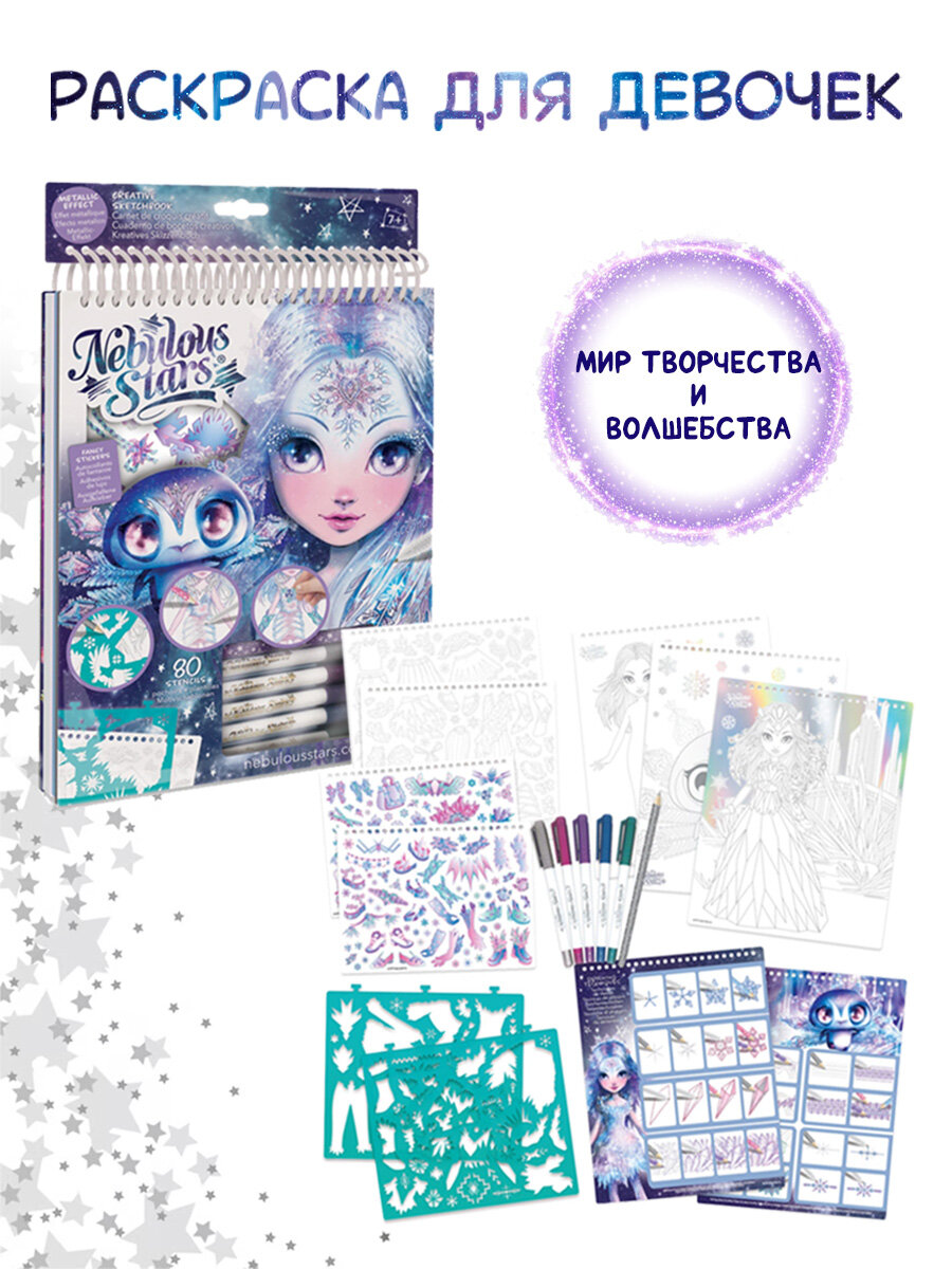 Купить Серия Iceana: Раскраска для девочек (30 черных скетч страниц, 5 ручек с эффектом металлик, 1 карандаш), 11122_NSDA с доставкой по всей России.