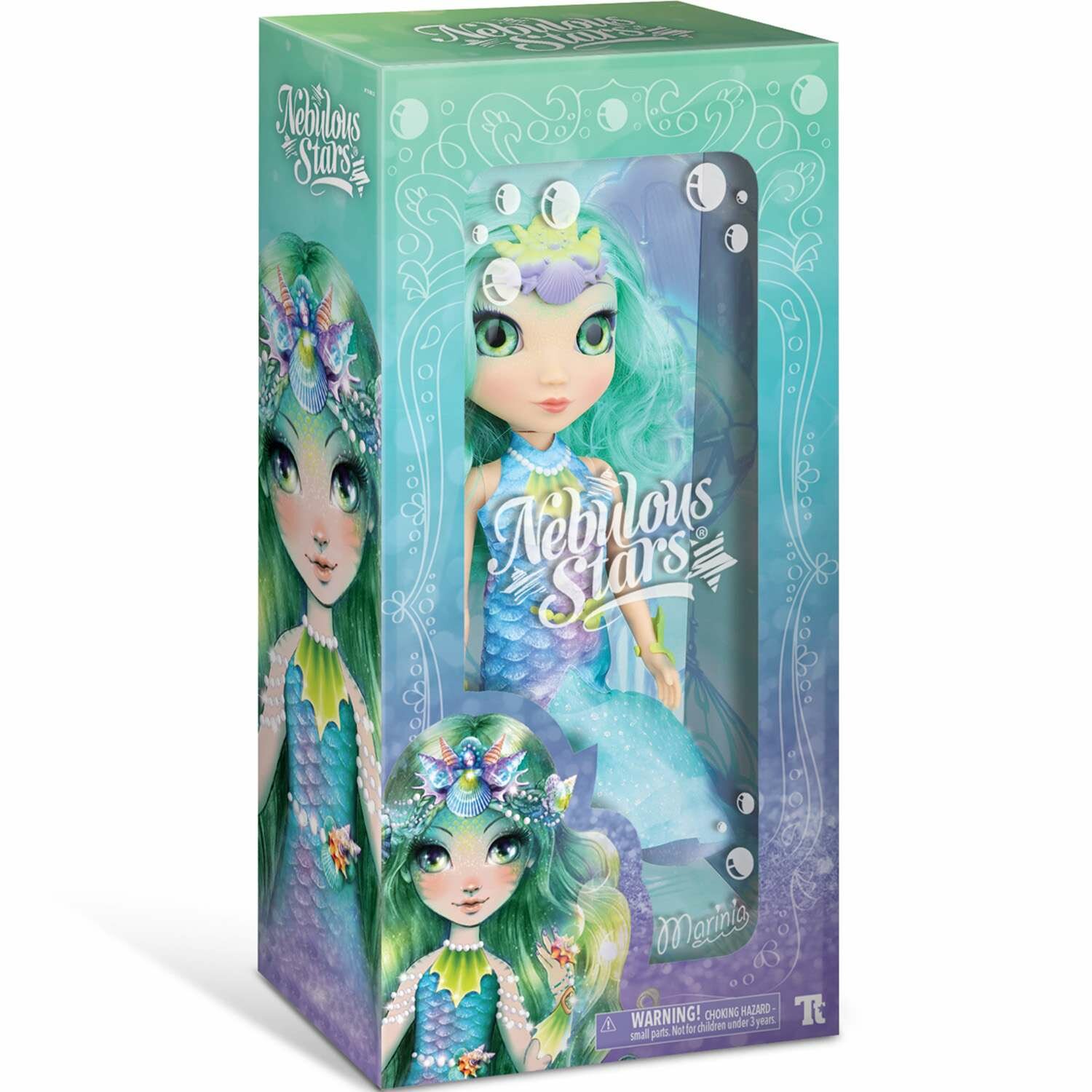 | Комплектация | кукла Nebulia (38 см), съёмные туфли из ПВХ, серебристые леггинсы, топ на бретелях, юбка из фиолетовой органзы с принтом, темно-синий жакет-болеро, съёмный головной убор, браслеты и пояс, инкрустированный драгоценными стразами, полная история звёздочки Nebulia |