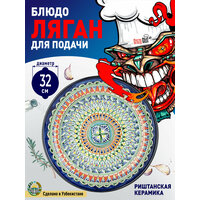 Сервировочное блюдо Ляган «Риштанская Керамика» для плова и восточной кухни, круглая форма, 32 см (Цвет: Синий Орнамент): сравнение цен, характеристики, фото, актуальное наличие и цены.