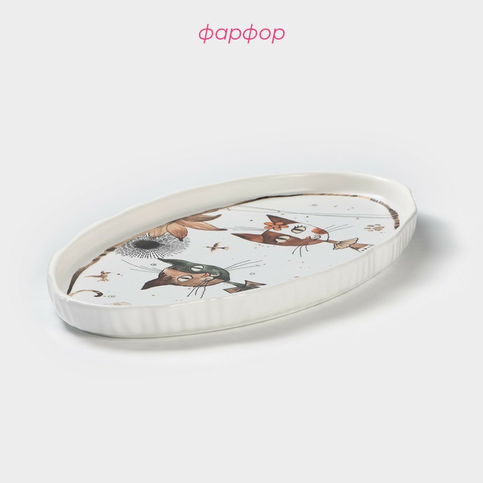 Сервировочное фарфоровое блюдо «Коты Аристократы», 30х17х2,5 см.: сравнение цен, характеристики, фото, актуальное наличие и цены.