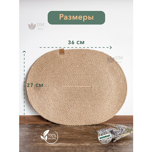 Набор овальных салфеток на стол под тарелки из джута - 4шт. (27 х 36 см.) с биркой. (Инструкция по уходу приложена). Ручная работа! Сделано с теплом и заботой. Плетеные овальные плейсматы смотрятся в деле очень стильно, достойно, добавят уюта и тепла вашему дому. Салфетки под тарелки сшиты из экологичного, натурального, высокопрочного материала - джут. Он не боится сырости и загрязнений, поэтому удобен в использовании на кухне. Салфетки под горячее легко очищаются мыльной водой и губкой (рекомендуем ручную стирку). Бирки на круглых подставках плетеных брендированные. Мы очень следим за качеством нашего товара. Салфетки из джута можно использовать для декора кафе, дома, ресторана, бара и т. д. Так же они являются отличным подарком на новый год, день рождение, новоселье и тд.