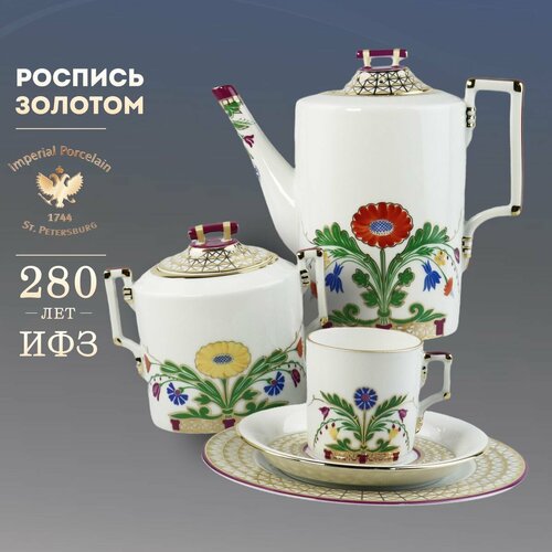 • Сервиз кофейный из твердого фарфора с надглазурной деколью с ручной росписью. Автор рисунка - Г. Шуляк.