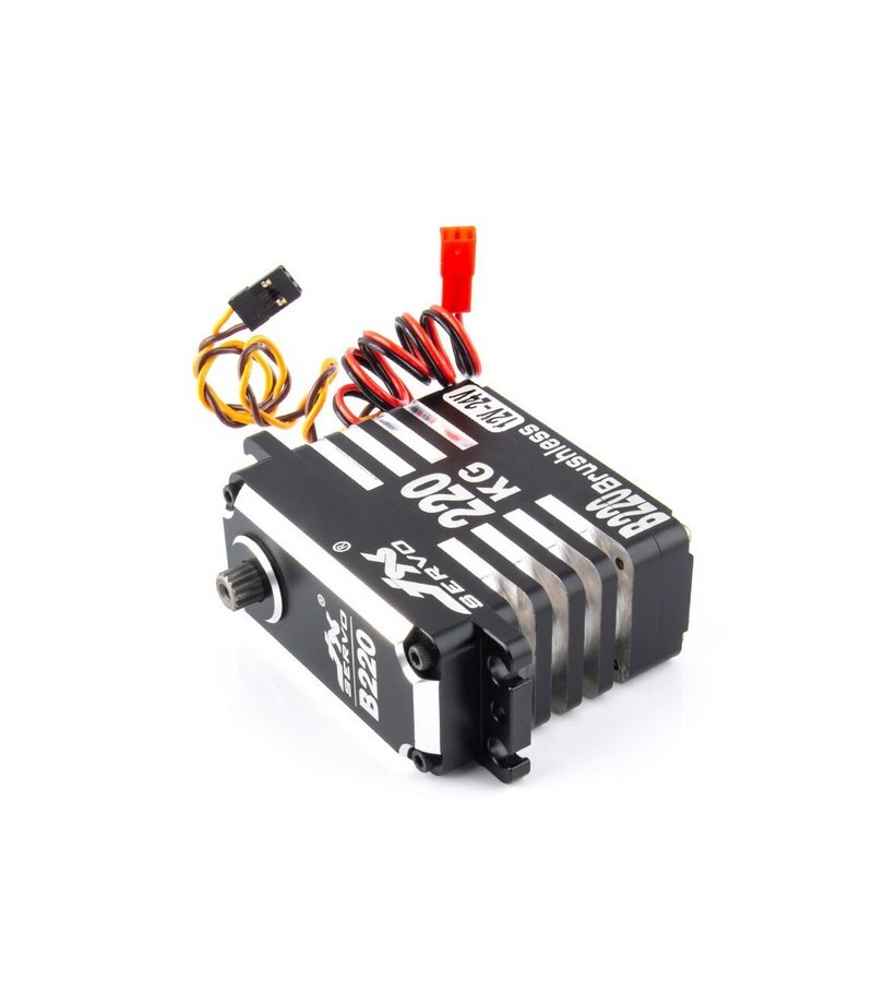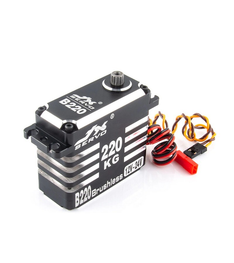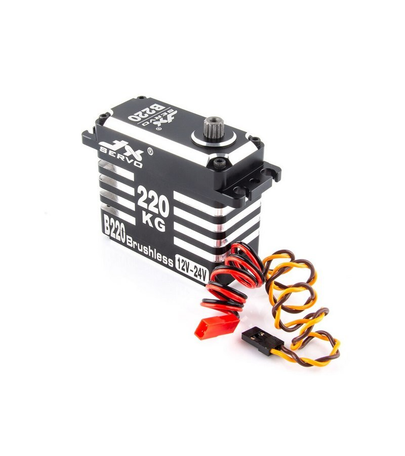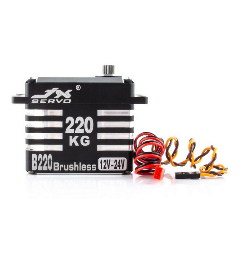 Большая мощная сервомашинка JX B220 с бесколлекторным мотором, усилием до 220 кг/см и углом поворота 180°. Подходит для больших авто- и авиамоделей, беспилотных летательных аппаратов (БПЛА), роботов. Высокопроизводительный цифровой бесколлекторный сервопривод. Полностью металлический корпус. Бесколлекторный мотор. Высокоточные стальные шестерни тайваньского производства. Двойные шарикоподшипники. Характеристики: модуляция: цифровая размеры: 65.8 х 30 х 58.8 мм вес: 260 г рабочее напряжение: 12.0 - 24.0 V усилие на валу: 128 кг/см (12.0V) усилие на валу: 160 кг/см (15.0V) усилие на валу: 215 кг/см (18.0V) скорость: 0.19 с/60° (12.0V) скорость: 0.17 с/60° (15.0V) скорость: 0.15 с/60° (18.0V) угол поворота: 180° длина соединительного провода: JR 265 мм В комплекте: одна сервомашинка комплект крепежа и качалок