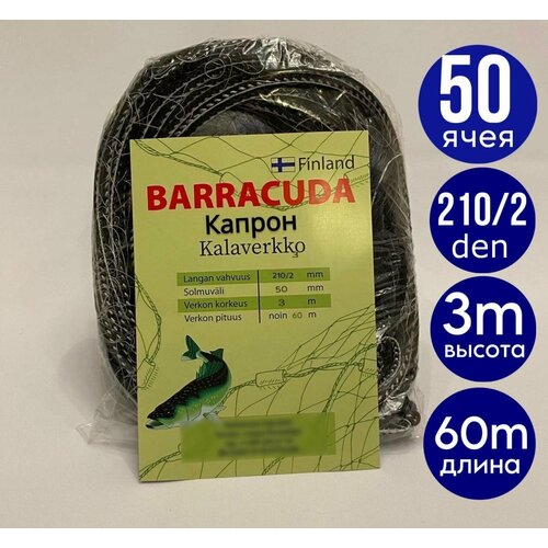 Купить Сеть финская BARRACUDA капрон 60 метров 50 ячея с доставкой по всей России. Сеть финская BARRACUDA капрон 60 метров 50 ячея: сравнение цен, характеристики, фото, актуальное наличие и цены.