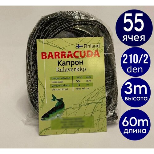 Купить Сеть финская BARRACUDA капрон 60 метров 55 ячея с доставкой по всей России. Сеть финская BARRACUDA капрон 60 метров 55 ячея: сравнение цен, характеристики, фото, актуальное наличие и цены.
